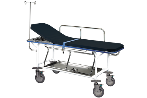 View full detailsP-172 Stretcher, Complete With Accessories. Includes Four Locking Casters, Lower Shelf, Side Rails, Fowler Head Rest, IV Rod, Restraint Strap, Matt...