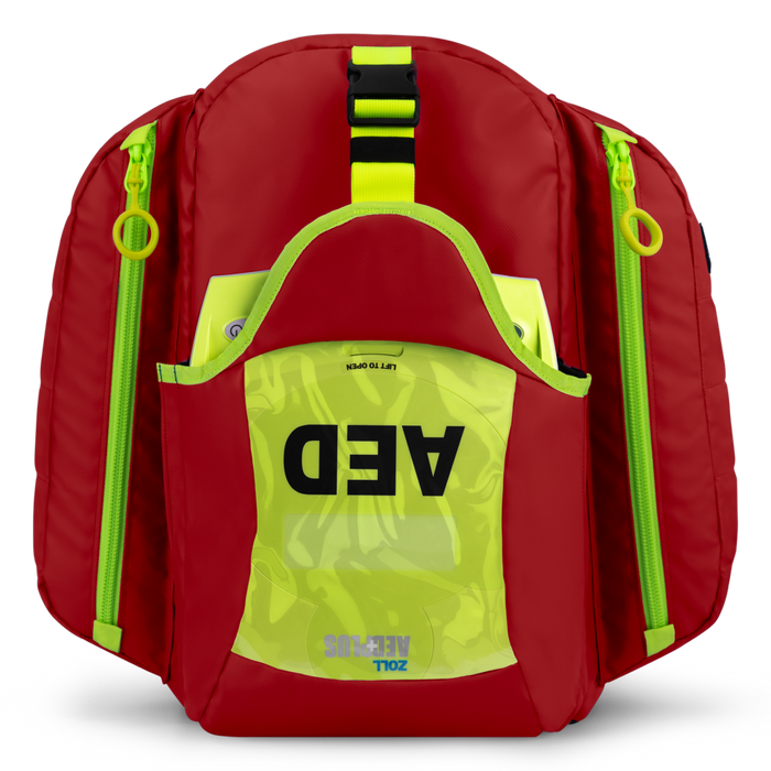QuickZip access to main compartment through the back panel, maintaining access to contents and AED